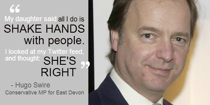 Below is a direct quotation from two pages of (free publicity) for Hugo Swire in this week’s Exmouth Journal. Hard to know why the newspaper published his long and rambling article as it had nothing to say about Exmouth or East Devon but had LOTS and LOTS to say about his globetrotting!