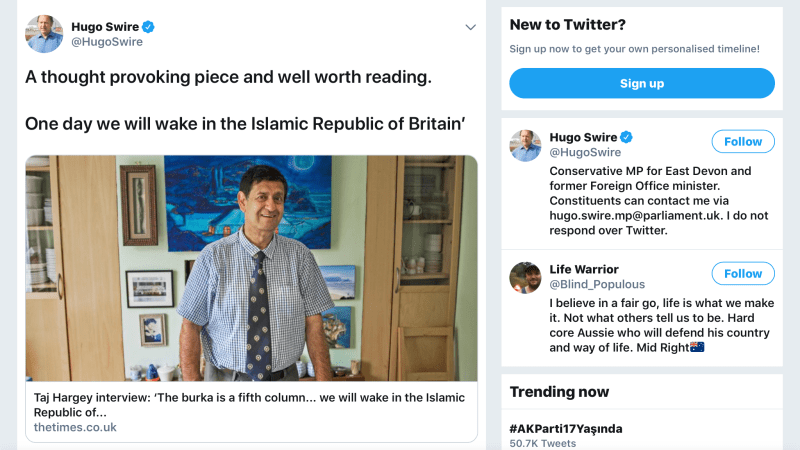 If 0.2% of the population of Hugo’s constituency are Muslim, and these are (say) 1/3 each of men, women and children, that means that Hugo is frightened that 0.07% of the population is enough to convert the entire District to Islam.