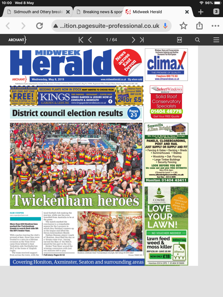 2 thoughts on “Biggest political upset in East Devon for 45 years – this is Midweek Herald front page”