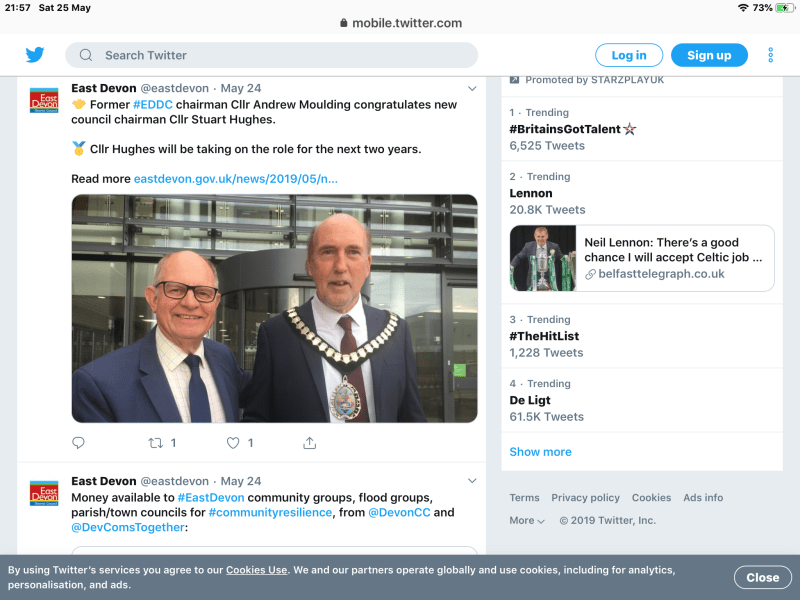 Image Posted by East Devon Watch Posted on 25 May 2019 Posted under Misc EDDC: previous Tory chairman congratulates current Tory Chairman after Independents form majority of councillors Share this: Click to share on Facebook (Opens in new window) Facebook Click to share on X (Opens in new window) X Click to email a link to a friend (Opens in new window) Email Click to print (Opens in new window) Print Like Loading... Related