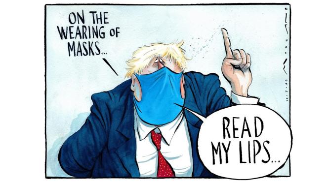 Standard Posted by East Devon Watch Posted on 14 Jul 2020 Posted under Misc Boris on wearing masks …………………… Morten Morland’s Times cartoon: July 14, 2020 Share this: Click to share on Facebook (Opens in new window) Facebook Click to share on X (Opens in new window) X Click to email a link to a friend (Opens in new window) Email Click to print (Opens in new window) Print Like Loading... Related