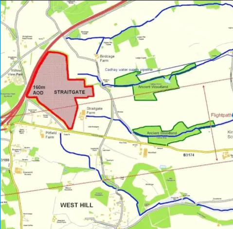 One of the key issue is the permanent destruction of three important watercourses (that feed hugely sensitive bogs, ancient woodland and mediaeval fishponds).