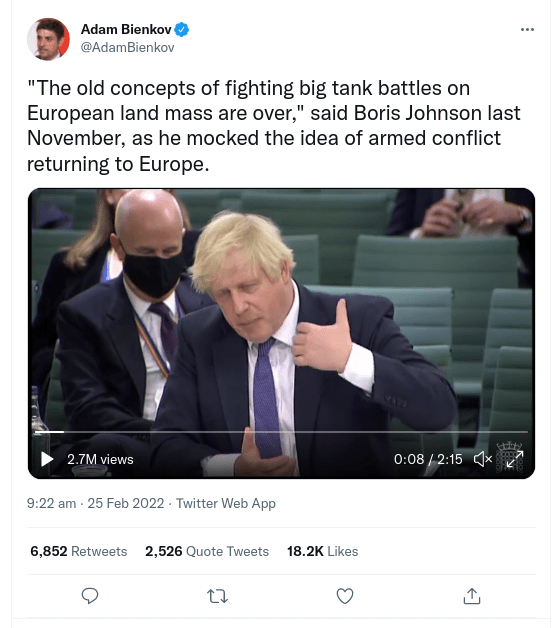 With MPs less likely to speak at the group in recent years, the WRF has turned its focus to working on public opinion. It has an active Twitter feed, echoing official lines from Kremlin-funded organisations – although it has been uncharacteristically silent since Putin’s movement this week of recognising the separatist ‘People’s Republics’ of Donetsk and Luhansk in the east of Ukraine, and since the start of today’s invasion.