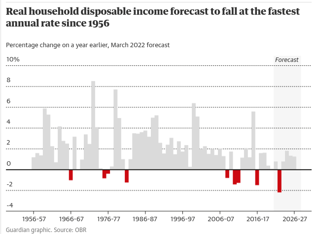 Real household disposable income forecast to fall at the fastest annual rate since 1956 – graphic