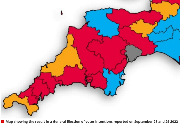 The Tories would lose most of their Devon seats and be almost wiped out in the Westcountry if there was a General Election now. The latest survey on voting intentions shows Labour has the biggest lead over the Conservatives since the 1990s as electors respond to the Government’s handling of the economy and cost-of-living crisis.