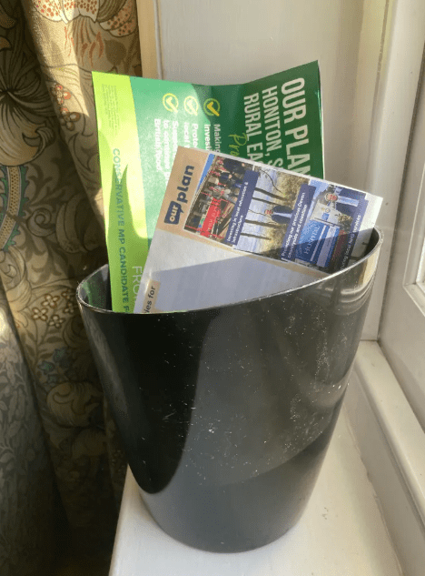 I’m feeling rather cross about this. Royal Mail have delivered yet another lavish piece of propaganda from the party that sabotaged Seaton Hospital. It’s filed in my special place for them (pictured) but before I add it to my recycling, a reminder of the Conservatives’ 5-point plan for Seaton Hospital: