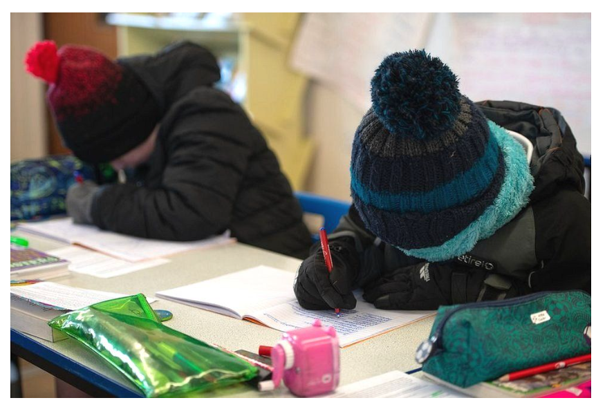 At one primary in Devon, temperatures are so low that children keep gloves and coats on during some lessons.