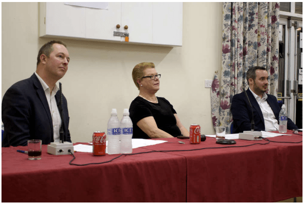Richard Foord (left) and Simon Jupp, separated by the debate’s chairperson (image courtesy: LDRS/Alfie Richardson)