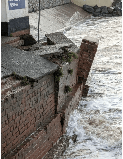Volunteers at Exmouth’s National Coastwatch Institution (NCI) arrived to their lookout station this morning (April 9) to find that the foundations of one of the two buildings had collapsed into the sea. They said that the building was evacuated and had been “propped up” temporarily by East Devon District Council.