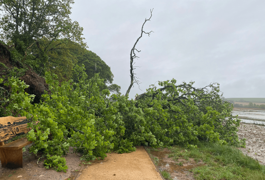 Today we lost a magnificent oak tree which sat on the cliff at the end of a granary lane garden, on the western LORP path.