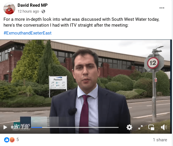 “During my visit last week, I challenged South West Water on the timescales for a permanent solution and repeated my calls to speed up plans for £38m investment in Exmouth. They can’t take our town for granted again.”