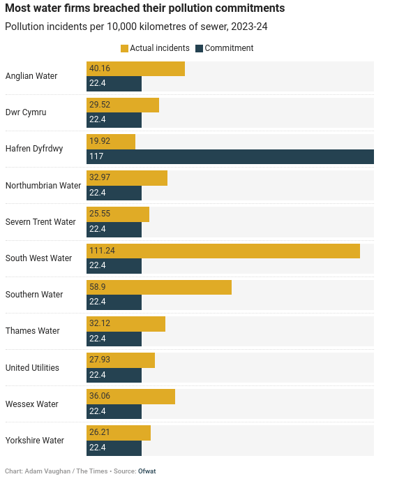 Note: according to a report in the FT, less than 12 per cent of the sewage network in England and Wales was built in the 19th century, undermining water industry claims that outflows of raw effluent and storm water are a result of antiquated Victorian infrastructure.