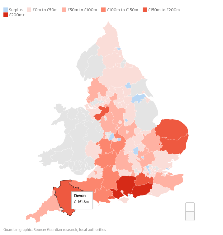 The deficits – currently totalling £3.4bn – will hit £5.2bn in 12 months. At least 18 councils have warned explicitly that the debts put them at risk of insolvency unless the government intervenes, with council estimates suggesting even more could go bust.