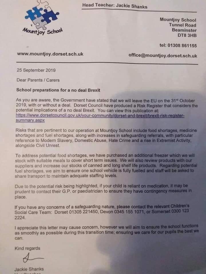 Government Brexit advice to schools: stockpile tinned food, have emergency supply of fuel to run one school and watch out for hate crimes on kids and their families
