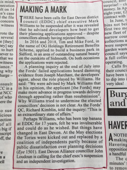 “Private Eye” calls out EDDC CEO Mark Williams over Sidford Business Park advice to developer