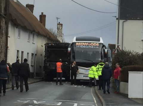 The idea of an industrial complex in Sidford has not died – it could return at any minute.  This was the situation when two large vehicles met on one of the narrowest parts of the road  – vehicles were trapped for more than an hour … imagine if there had been a medical emergency or fire during that time …